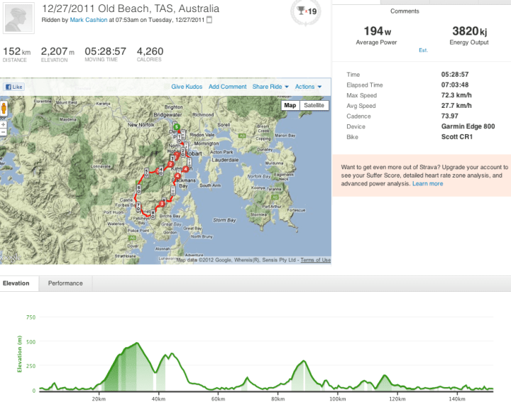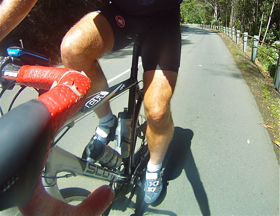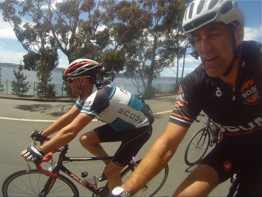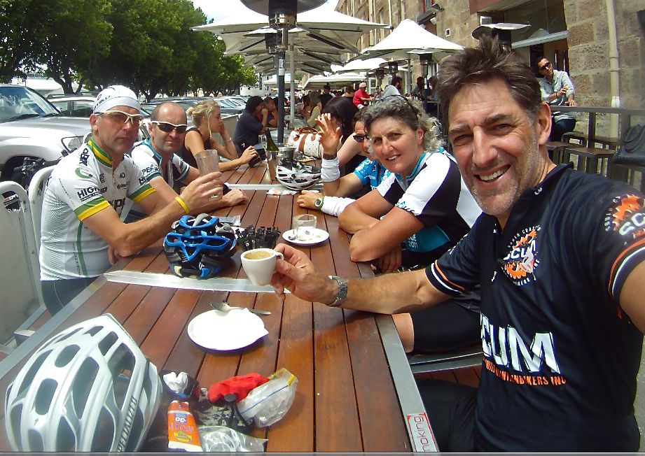 If only they had let me sleep for a while…the mostly up return leg punching into headwind didn’t exactly beckon but off we went into more lush rural undulations that lead to the Nichols Rivulet climb, a 5km forested climb as the summer sun elevated the temperature in the same direction. I hung on through the undulations and Bonnet Hill climb, called the police to report an idiot that swerved at us and even managed some token-effort sprints to stay within reach of the ever charging ‘Rev’, as we wound our way back into the city and waterfront. The crew departed following coffee and ice creams to leave me with what was, by then, a punishing 18km of upriver riding into a solid headwind. Head down, grimace up with my leg grinder on it was a case of “shut up legs!” …thanks for the inspiration Jens.