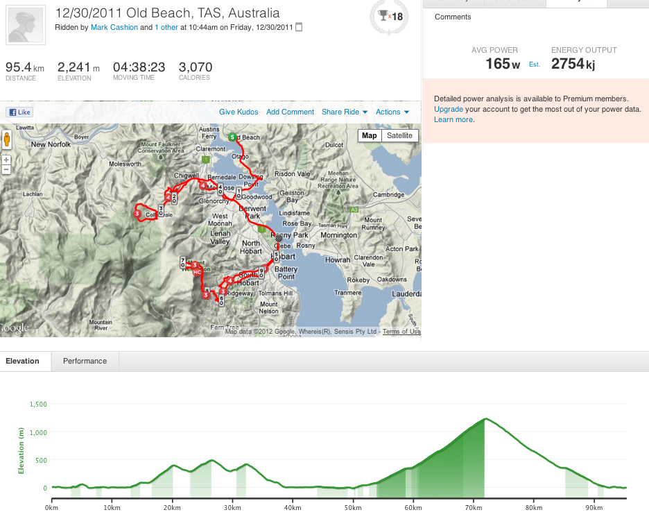Rapha 500 – Day 1. Welcome back to the fold. 107km, 2115m climbing including the 1271m ascent of Mount Wellington. Thanks Rev for the wheel, the laconic references to my labouring, a honking descent and finally a celebratory coffee at Retro Cafe on the Salamanca waterfront.